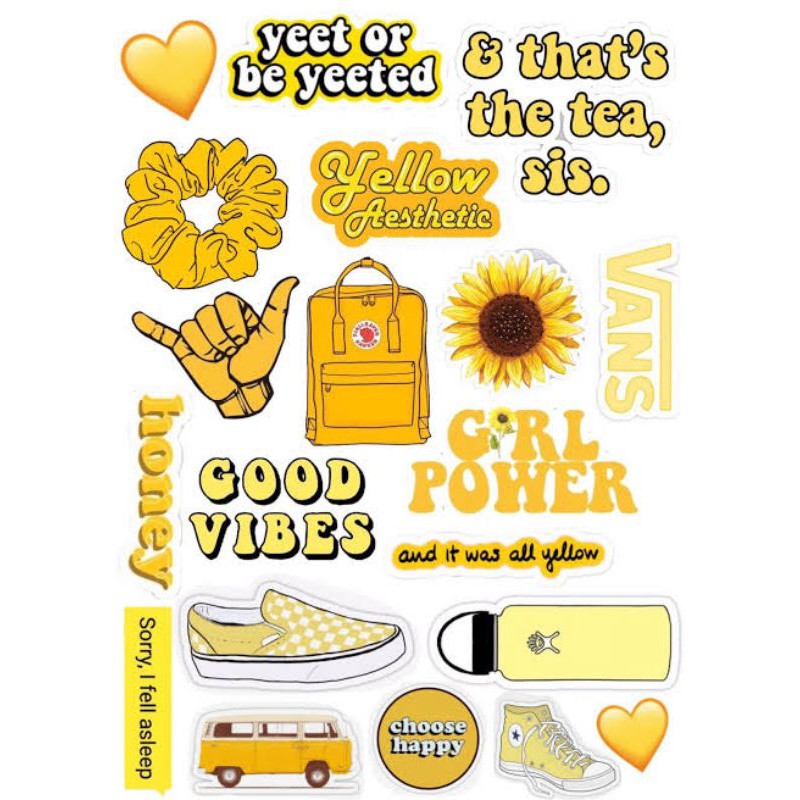 If you find this site serviceableness, please support us by sharing this posts to your preference social media accounts like Facebook, Instagram and so on or you can also Save this blog page with the title Yellow Aesthetic Stickers by using Ctrl + D for devices a laptop with a Windows operating system or Command + D for laptops with an Apple operating system. If you use a smartphone, you can also use the drawer menu of the browser you are using. Whether it's a Windows, Mac, iOS or Android operating system, you will still be able to bookmark this website.